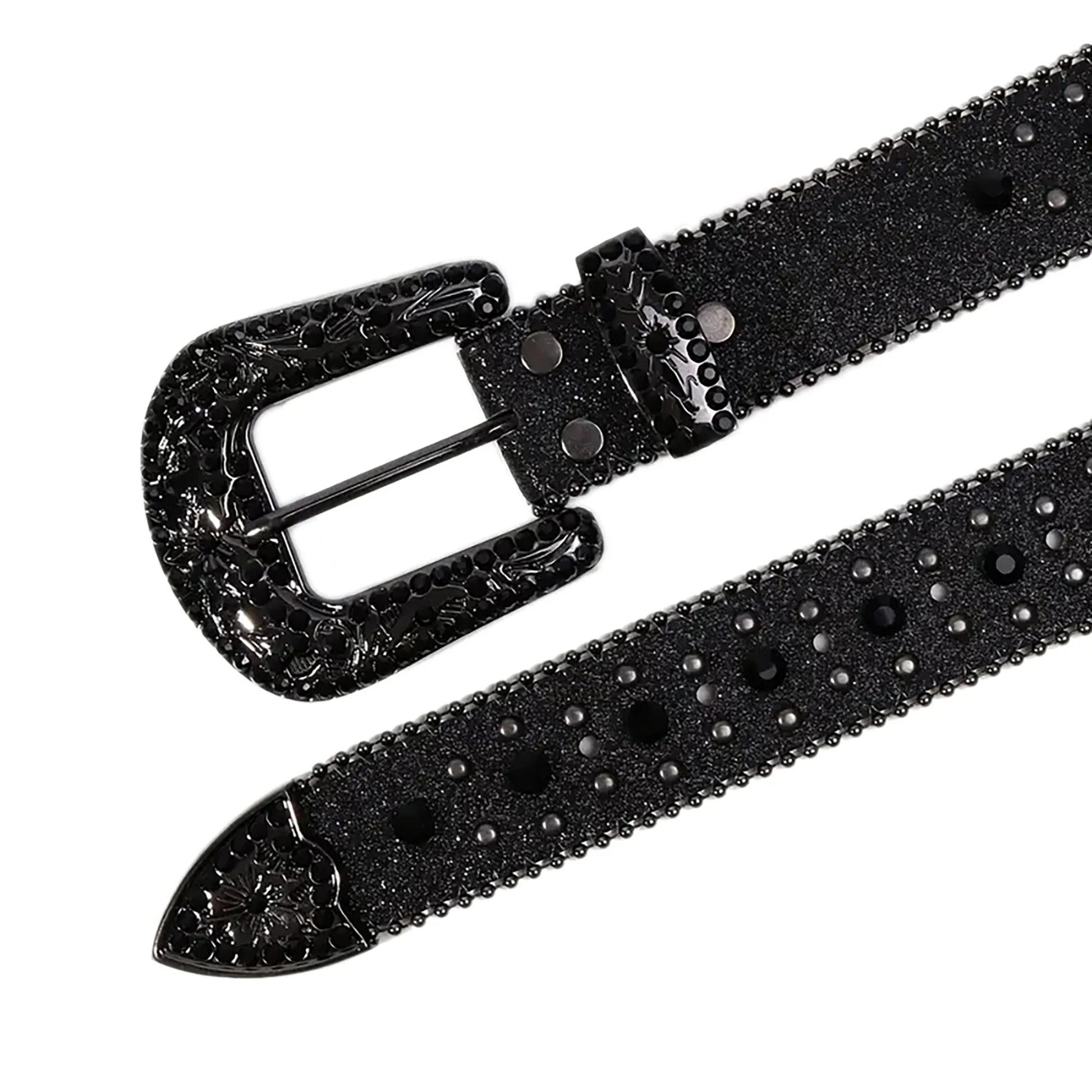 A western belt with rhinestones in a cowboy style. Crafted from faux PU leather, it's perfect for jeans, Y2K, western, and streetwear styles. Unisex.